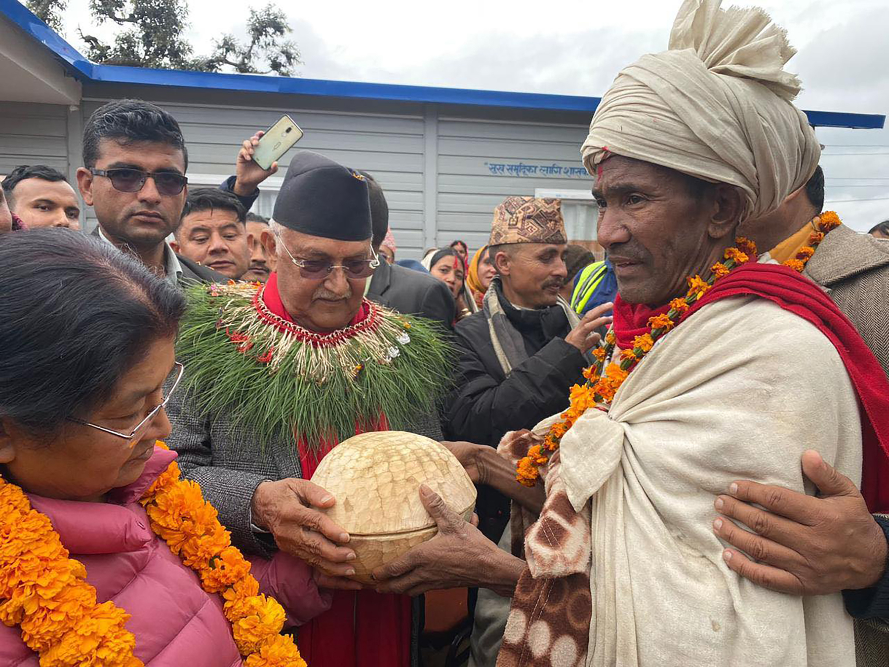 अध्यक्ष ओलीलाई राउटे मुखिया शाहीद्वारा कोसी उपहार
